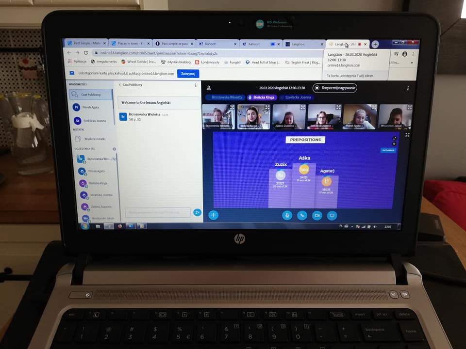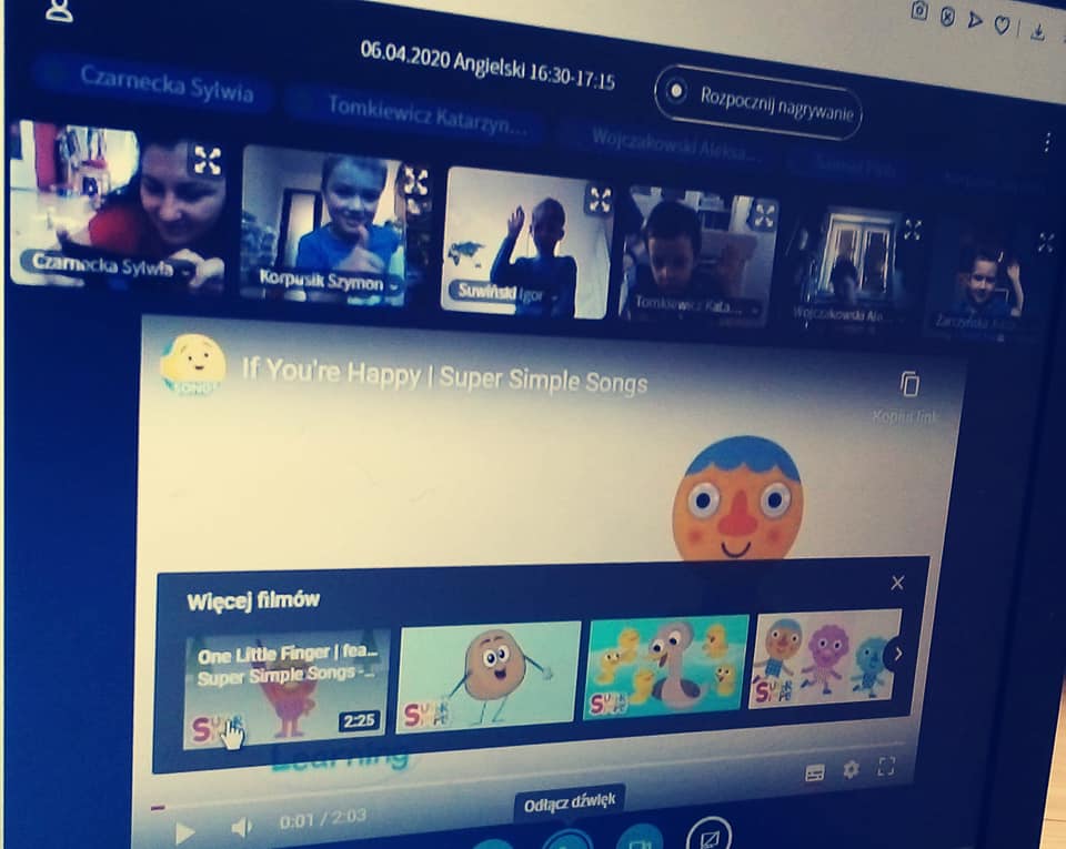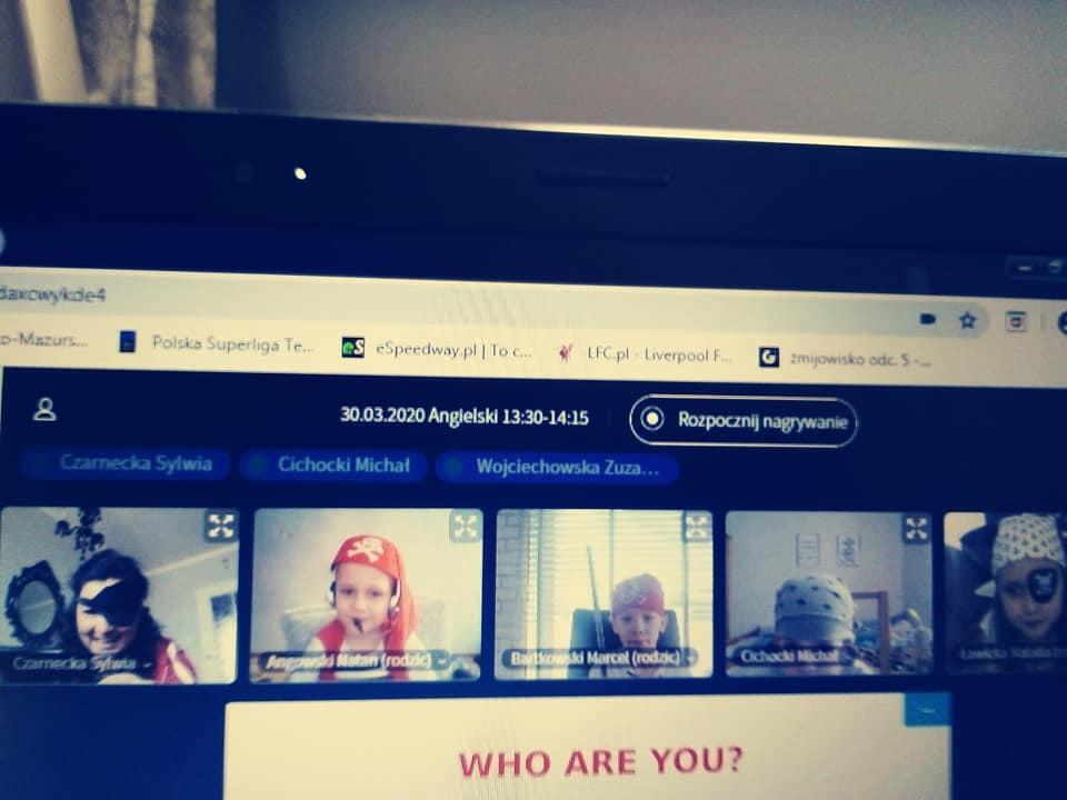 Wychodząc naprzeciw oczekiwaniom naszych uczniów, na czas przerwy w lekcjach stacjonarnych wprowadziliśmy zajęcia online. Ciężko pracowaliśmy, żeby znaleźć rozwiązanie trudnej sytuacji związanej z zamknięciem szkół. Powrót do naszych zajęć był możliwy dzięki przeniesieniu ich do świata wirtualnego i choć forma ich prowadzenia jest inna od dotychczasowej, to jesteśmy przekonani, że jest ona równie efektywna, ciekawa i motywująca. Korzystamy z narzędzi i materiałów dydaktycznych, które umożliwiają nam prowadzenie profesjonalnych zajęć online. Lekcje są prowadzone na żywo, uczniowie i nauczyciel się widzą i słyszą, tak więc mają one charakter interaktywny. Lektorzy Ci sami, energia również, a jedyną zmianą jest to, że zamiast spotkać się osobiście, widzimy się na platformie. Zapraszamy do obejrzenia zdjęć z zajęć.